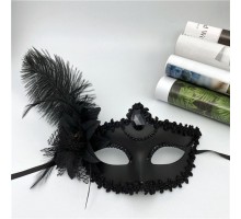 Siyah Mat Renk Yandan Tüylü Güllü Parti Balo Venedik Maskesi 16x22
