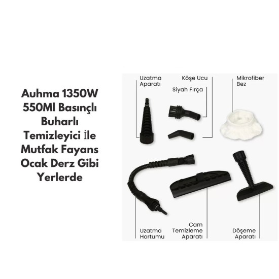 Bu yüksek performanslı buharlı temizleyici, evinizde, ofisinizde veya endüstriyel alanlarda hijyenik ve derinlemesine temizlik için ideal bir çözüm sunar. 1350W güçlü motoru sayesinde hızlı ve etkili buhar üretimi sağlar, 550ml su haznesi ile uzun süreli kullanım imkanı verir.