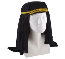 Siyah Renk Altın Pullu Arap Şapkası Arap Kefiyesi 20x50 cm