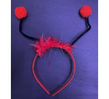 Kırmızı Ponponlu Gösteriler İçin Plastik Uğur Böceği Tacı