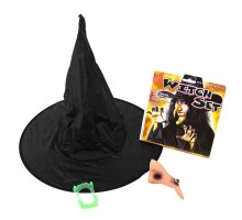 Cadı Kostüm Seti 6 Parça - Şapka Pelerin Diş Tırnaklar Çene ve Burun