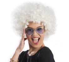 Beyaz Renk Kıvırcık Afro Bonus Peruk