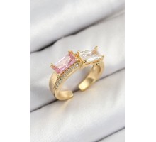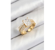 Gold Renk Zirkon Taşlı Pirinç Kadın Yüzük - TJ-BYK3919