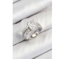 Gümüş Renk Zirkon Taşlı Pirinç Kadın Yüzük - TJ-BYK3918