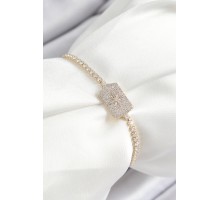 Kare Zirkon Taşlı Gold Renk Kadın Bileklik - TJ-BB8148