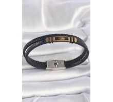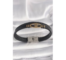Gold Renk Metal Labirent Tasarım Siyah Renk Deri Erkek Bileklik - TJ-EB2555-KS