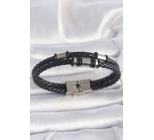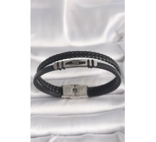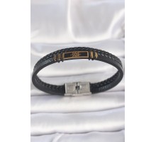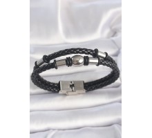 Metal Aksesuarlı Siyah Renk Deri Bileklik - TJ-EB1716