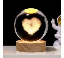 Usb li Ahşap Altlıklı Kalp Tasarımlı Cam Küre