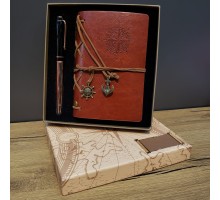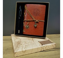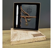 Deri Pusula Tasarımlı Defter Ve Metal Kalem Seti