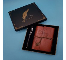 Deri Defter ve Tükenmez Kalem Karton Kutu Kahverengi