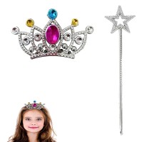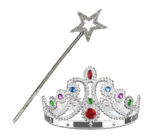 Çocuklar İçin Taraklı Prenses Tacı ve Prenses Yıldız Asa Seti Gümüş