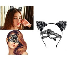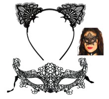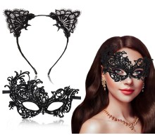 Kırmızı dantel kedi maskesi ve uyumlu kedi kulaklı taç seti, kadınlar için tasarlanmış şık ve dikkat çekici bir aksesuar..