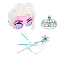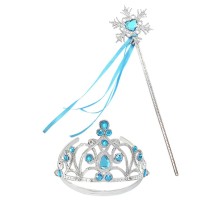 Mavi Taşlı Elsa Çocuk Taç ve Kar Temalı Kurdeleli Elsa Asası Sopası