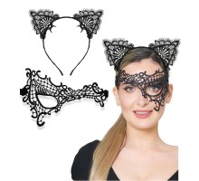 Kırmızı Dantel Kedi Maskesi ve Dantel Taç Seti – Kadın Kostüm Aksesuarı