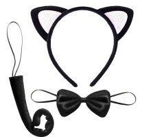 Peluş Siyah Renk Kuyruk ve Papyon Yetişkin Çocuk Uyumlu