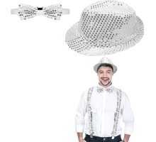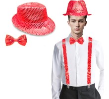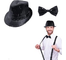 Siyah Payetli Şapka ve Papyon Seti – Parıltılı Yetişkin Kostüm Seti
