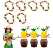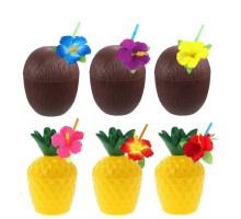 Tropikal Parti Bardak Seti – Ananas ve Hindistan Cevizi Şekilli Pipetli Bardaklar (20 Adet)