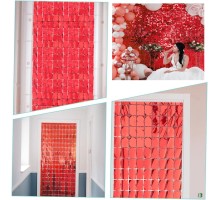 Kırmızı Renk Dikdörtgen Kesim Parlak Sim Görünümlü Fon Perde Dekor 1x2 Metre