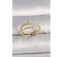 Pirinç Gold Renk Ayarlanabilir Baget Zirkon Taş Model Kadın Yüzük - TJ-BYK3589