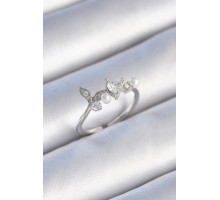 Pirinç Gümüş Renk Beyaz Mineli Çiçek Model Zirkon Taş Detay Kadın Yüzük - TJ-BYK3712